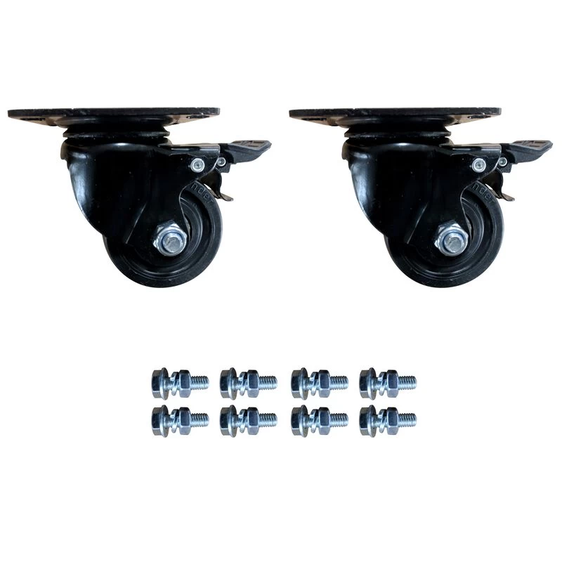 Take convenience to a new level in your gym with the 2 Pack of Caster Wheels for your Mass Storage System. Featuring a 900-pound weight capacity and locking brakes to keep your storage system from rolling.