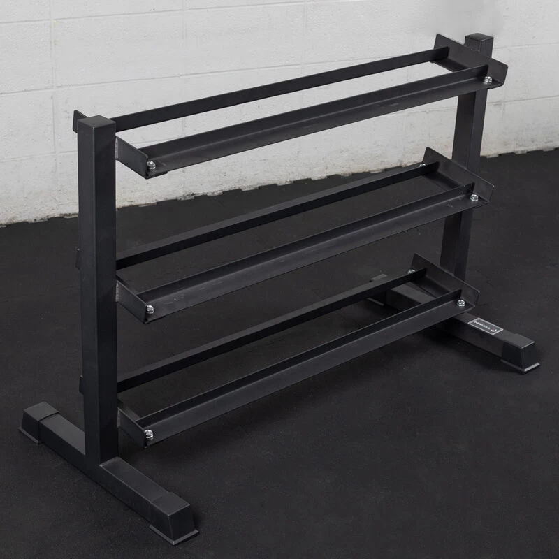 Secure, sturdy, and the perfect organizer for dumbbells, the 3 Tier Weight Stand is the ideal addition for decluttering your home gym. This weight storage system is built to fit rubber hex dumbbells, cast iron dumbbells, urethane, and neoprene. The sturdy column stand, crafted from heavy-duty, powder-coated steel, can easily support up to 800 LB and puts dumbbells at the proper height for loading and unloading. The shelves feature an angled surface, ensuring an easy pickup of any dumbbell. With the addition of the Dumbbell stand, you will add consistency to your routine, develop proper workout form, and keep your weights off the ground.