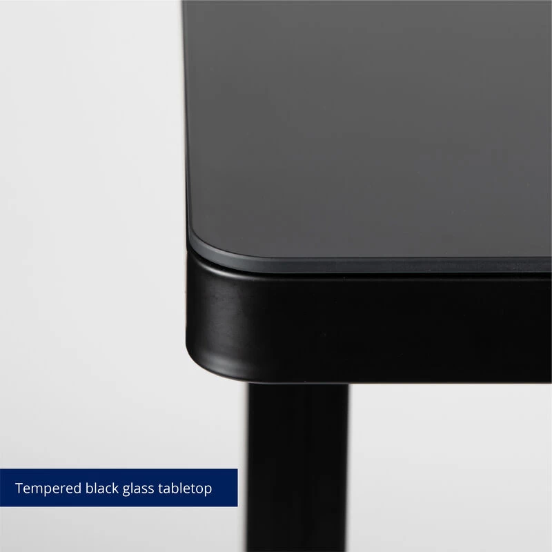 TEMPERED GLASS TABLETOP: Featuring a modern black glass top finish. Use neon dry erase markers to take notes instead of filling your desktop with post-its.