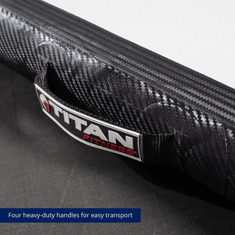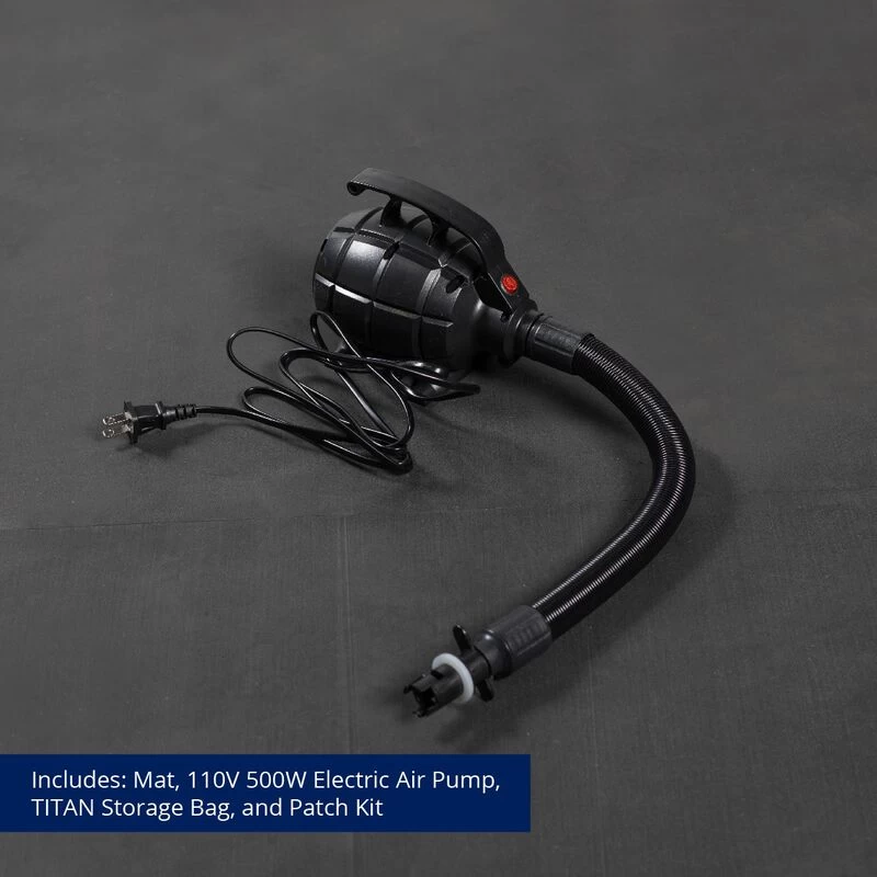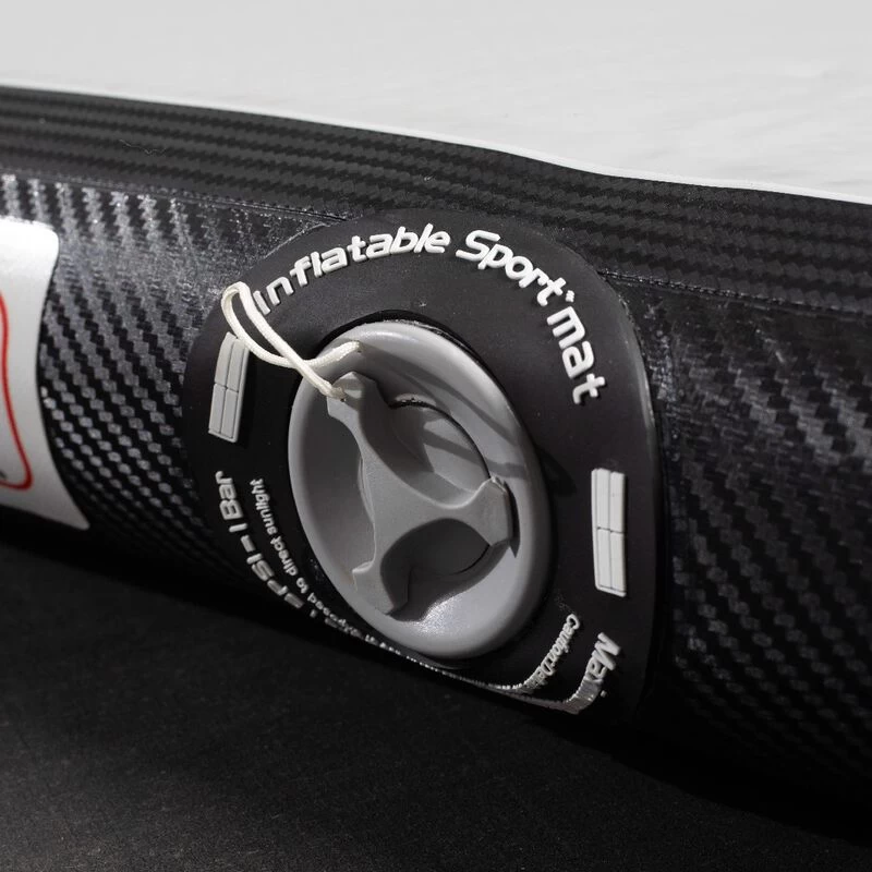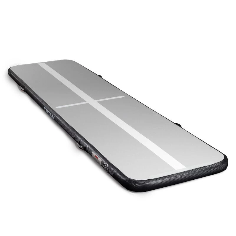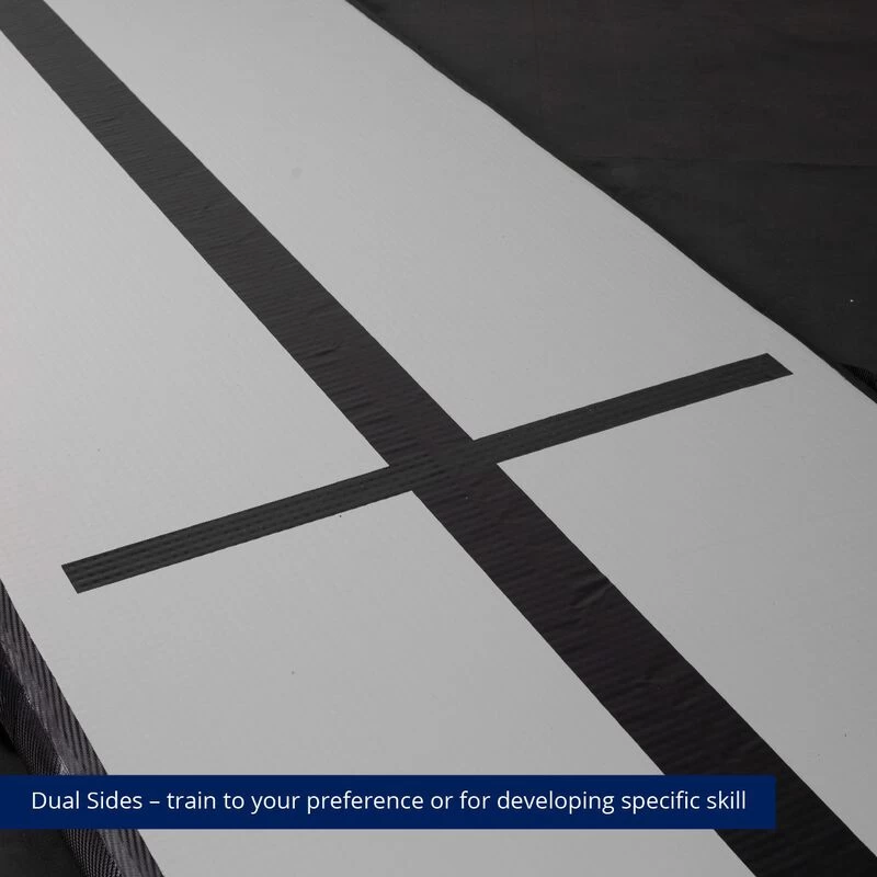 Stick the landing with the Air Gymnastic Mats, explicitly designed for gymnasts, pre-school gymnastics, cheerleading, martial arts, and more. These training mats provide excellent traction for confident bouncing and flipping. Constructed from PVC Tarpaulin with Carbon Fiber reinforced sides, this waterproof tumbling mat will stand the test of time whether performing compositions indoors or outdoors. The inflatable air mat features dual-side training to develop sequence routines further. One side presents a high contrast black center stripe, while the other displays a low contrast white center stripe. Both center stripes are directly printed, so no raised edges will affect footwork as a typical tape stripe may. Easy to handle, this tumbling track mat comes equipped with four heavy-duty handles, an electric air pump, a storage bag, and a patch kit. The air mat will maintain its pressure for days after setting the pressure to anything between rock-hard and bouncy-soft. Perfect for floor exercise and tumbling passes, whether at home, at a friend’s, or on vacation, you can train like you are in the gym with the Air Gymnastics Mat.