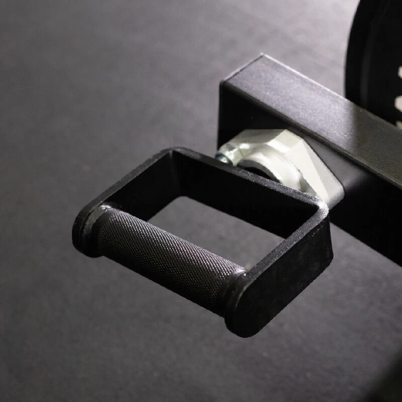 Increase your training with the innovative walk-through Clean N Jerk Landmine Attachment that will allow for a wide range of movements such as lunges and carries. This high-quality landmine trap bar attachment easily attaches to any Olympic bar with a painless slide-over design. It allows quick installation and prevents wear and scratching on your barbell. The threaded stop pin will keep the barbell in place as you train and works great for any landmine training. The attachment is made from 2 x 2.75-inch, 11-gauge steel tubing featuring two weight post sleeves and knurled handles that rotate 360-degrees. Take your workout to the next level by performing deadlifts to overhead presses without changing your grip as the handles rotate with you as you lift.