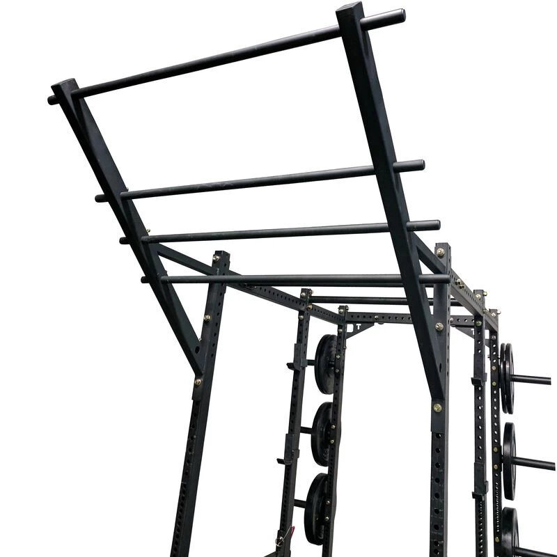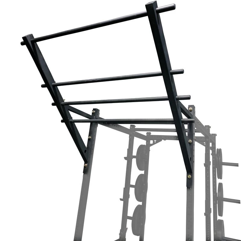 This angled pull up bar acts as a pull up ladder and attaches directly to your power rack to add diversity to your extensive workout routine!