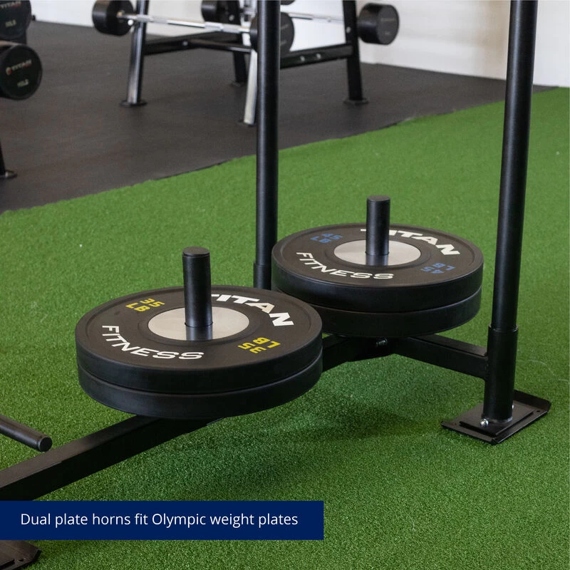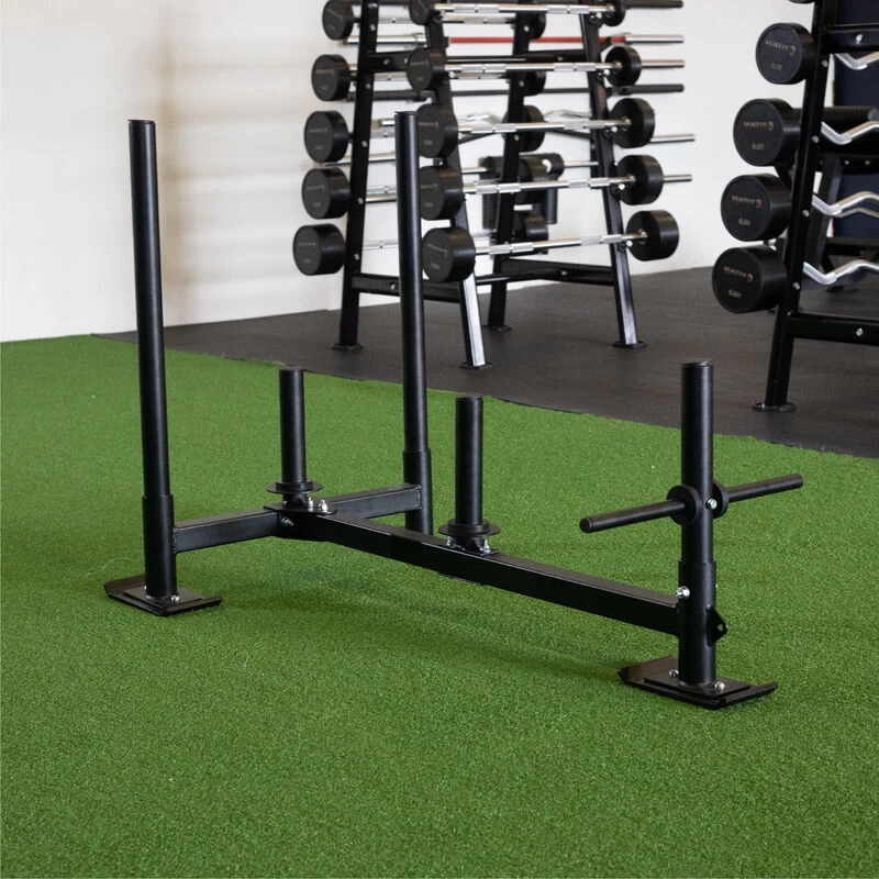 NOTE: Weights should only be loaded on the plate sleeves. Also, always load the sled in the back first. Never make the front heavier than the rear.