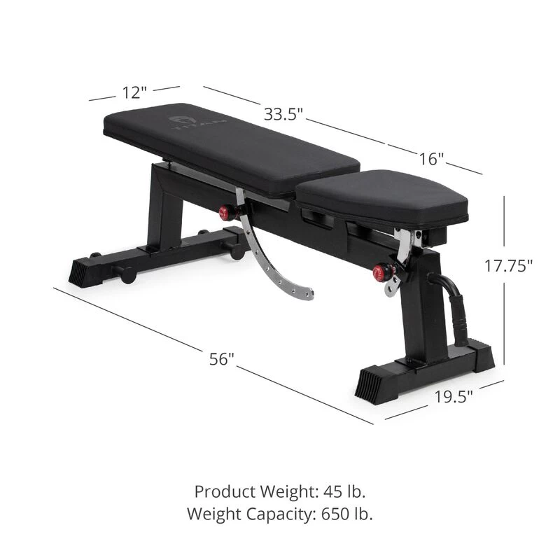 The Incline Weight Bench is constructed to set the back flat, at an incline, or positioned upright. The stable base will hold a weight capacity of 650-pounds and features several back and seat position adjustments to best accommodate your height and exercise preference. Perform bench presses, pullovers, kickbacks, and extensions while lying flat; indulge in inclines, rows, and flies within the seven adjustable incline stops, or focus on seated strength workouts like dumbbell curls, shoulder presses, military presses, and more in the upright position. This versatile, adjustable weight bench is fully portable, comfortable, and ready to handle your highest-level performance.