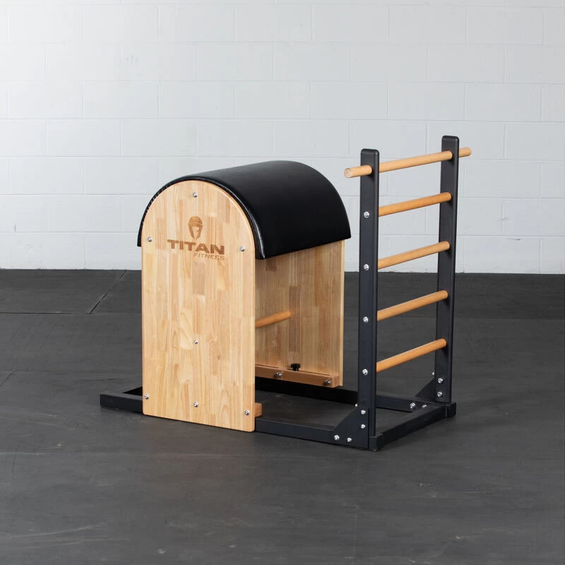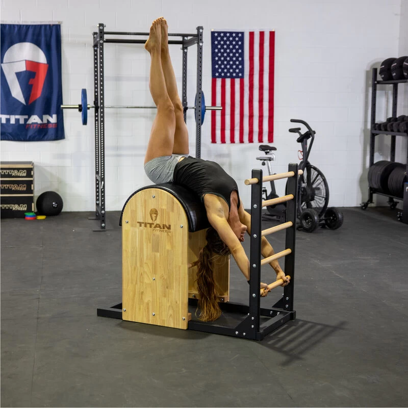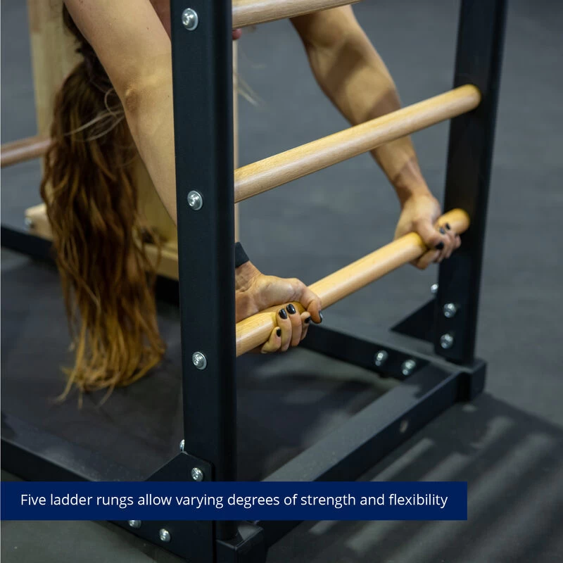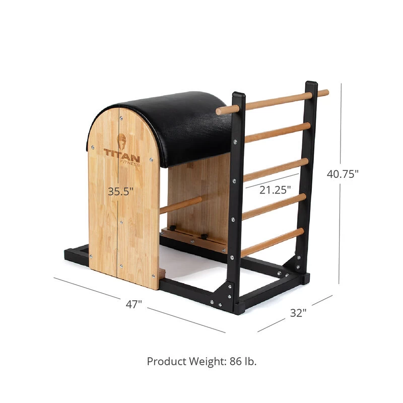 The Ladder Barrel from Titan Fitness® combines ladder rungs with a barrel structure for stretching, strengthening, and flexibility exercises. Most used to perform Pilates stretches. The adjustable barrel connects to the ladder by sliding on the base that adjusts for different athlete sizes. The barrel curve helps to target your core, back, and abdominal muscles. Or reach deep into stretches with the lowest bar’s help to improve shoulder, leg, and spine flexibility.