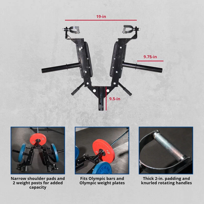 IMPROVED VERSION 2: Our redesigned version 2 of the Linebacker Squat features narrowed shoulder pads to maximize comfort and effectiveness and minimize unnecessary strain during high-intensity exercises. The upgraded version also boasts 2 new weight posts to increase total capacity to 650 lb.