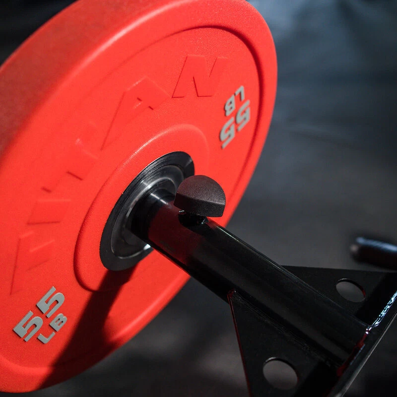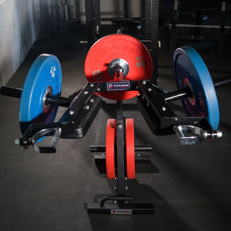 NOTE: Titan recommends resting the product on the ground to load plates before pairing with the landmine stand. (Landmine stand sold separately.) This will prevent spinning during the plate-loading process.