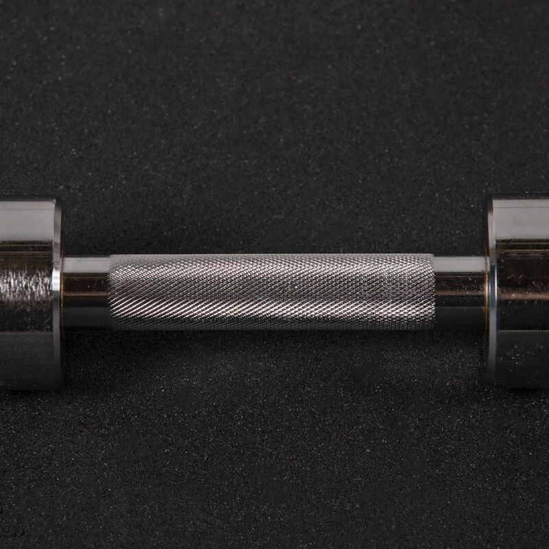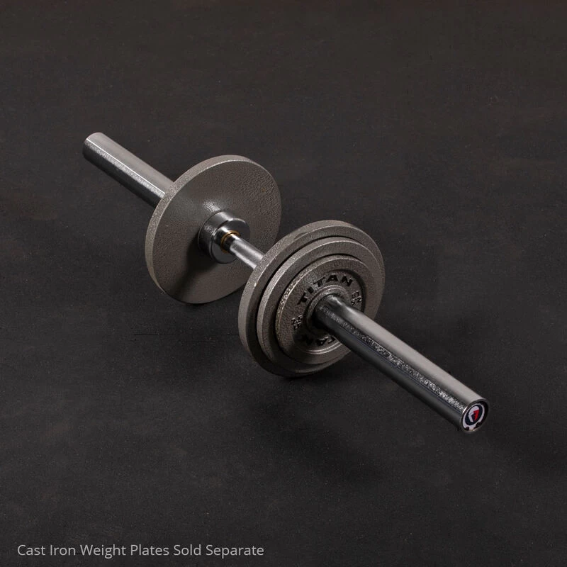 Unleash your inner Titan with the Loadable Dumbbell Handle, part of our exclusive adjustable dumbbell selection for space efficiency. This commercial-grade dumbbell handle was inspired by Olympic barbells featuring a loadable sleeve length of 13.75-inches. All versions of the Olympic Dumbbell Handle are constructed from high-quality rust-resistant steel with medium diamond textured knurling and bronze bushings. Incorporate the handles while performing lunges and squats in your fitness routine to target your hamstrings, quads, and glutes. You can even target your obliques by doing side bends and twists. They truly offer a total body workout.