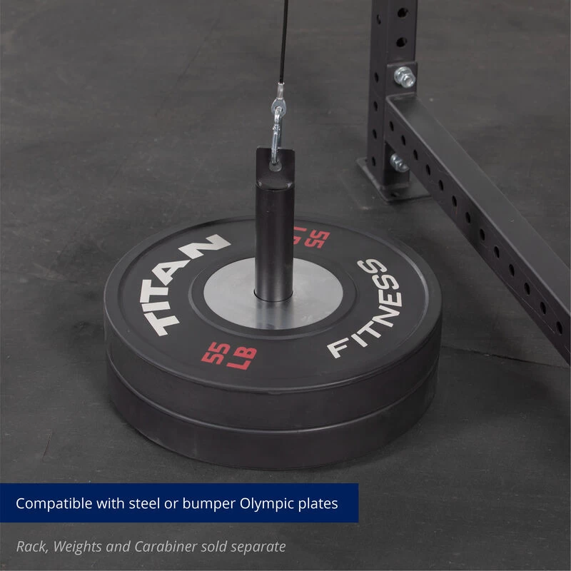 The Loading Pin by Titan Fitness® is designed to improve your overall grip strength. Crafted with a built-in connector at the top of the pin to attach a strap, carabiner, or rope compatible with a wide range of handles, pulleys, and straps. Load any Olympic size plate or bumper onto the sleeve, secure your favorite grip attachment, and perform a wide range of strength training exercises. If you are interested in starting grip strength training, this is the perfect tool to build your arms and hand muscles. You can also workout your shoulders, pecs, biceps, triceps, and more.