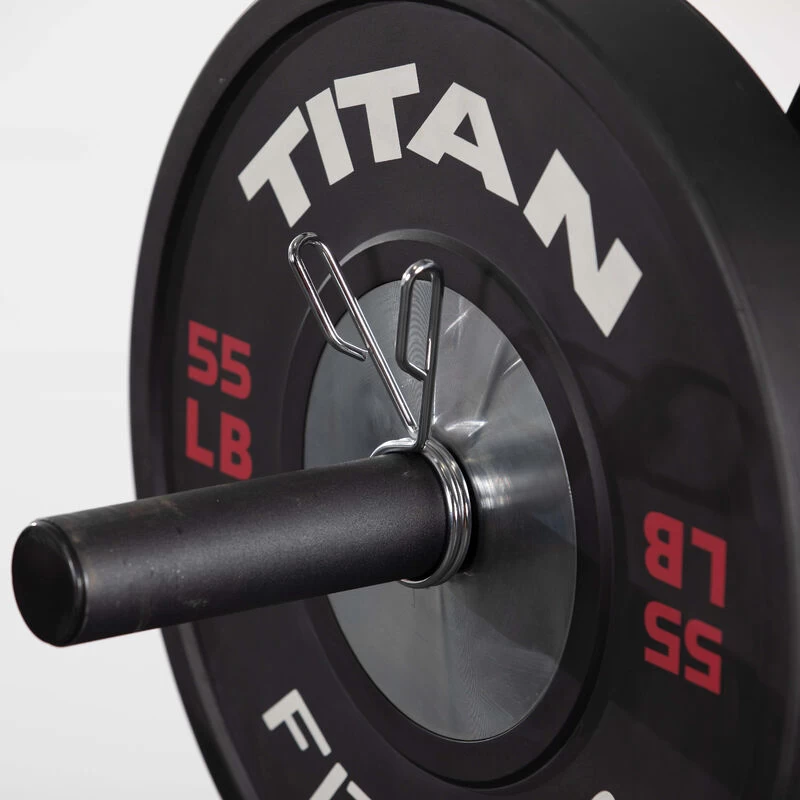 The Olympic Bar Weight Clips fit onto standard 2-inch diameter Olympic barbells to safely lift the bar without fear of the plates falling off. All you need to do is squeeze the handles together to pull off and remove or add weight plates and then replace. The heavy-duty construction and high-tension ensure our high-quality weight plates stay where they are. When you are not using them, you can store them on the Portable Plate and Barbell Storage Tree or any Titan Series Power Racks to keep your other plates in place.