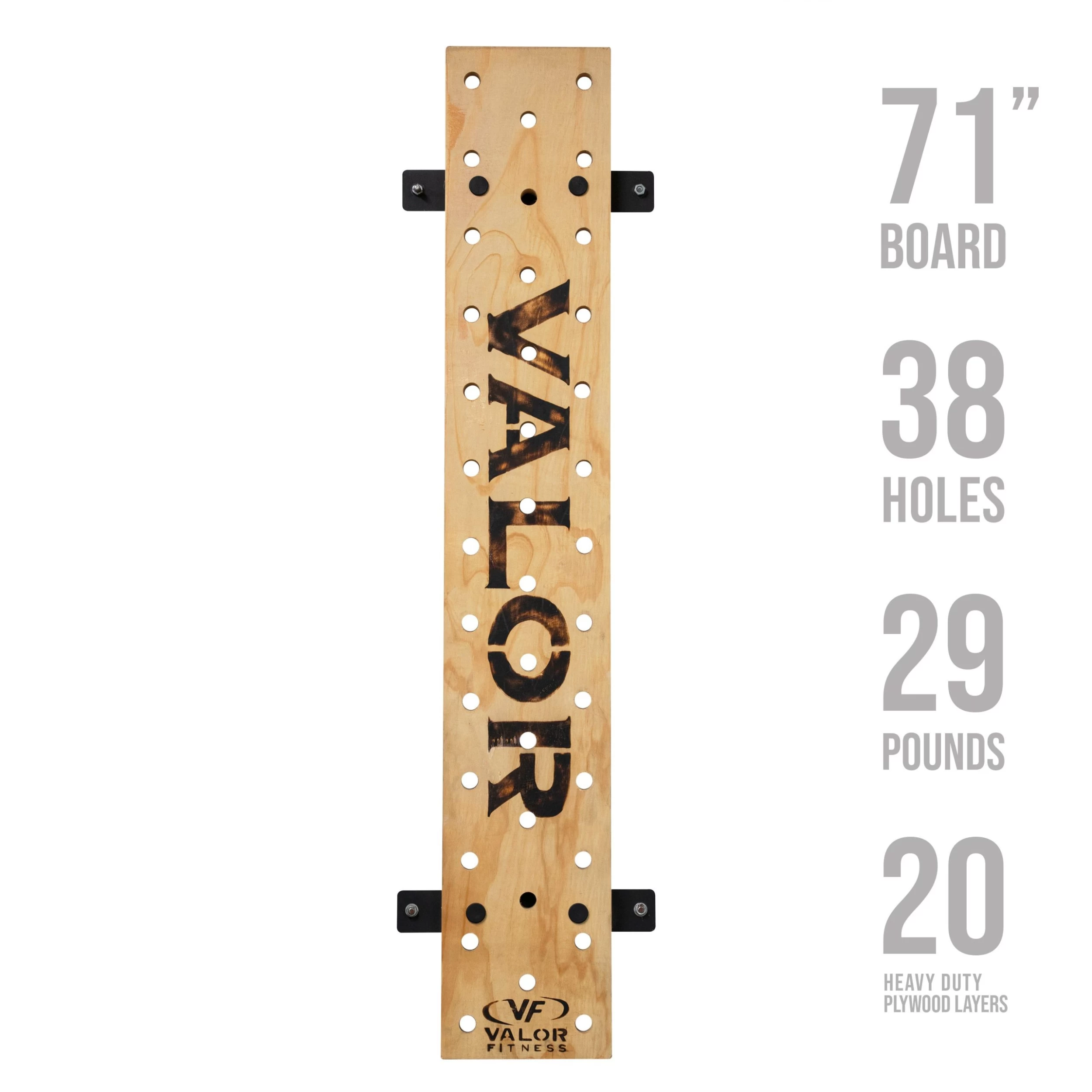 Training with aย pegboard wall is critical to building upper body strength for athletes across the spectrum – whether it be cross-training, rock climbing, gymnastics, or ninja warrior training! A great pegboard should help you increase grip strength while building your lats, traps, shoulders, and biceps and the Valor Fitness PG-1 is no different! Ourย pegboard features 38 holes to serve as climbing holds in conjunction with the 2 wood pegs measuring 6.5″ each.