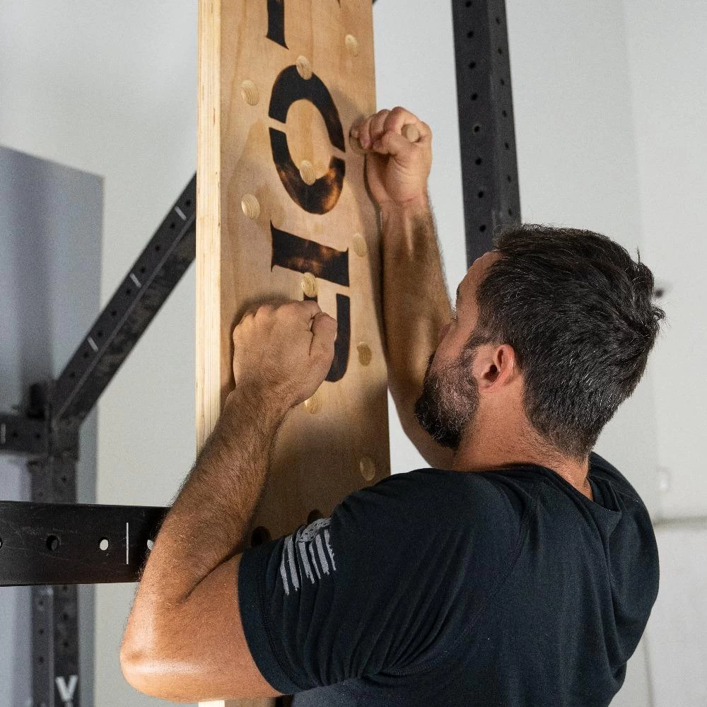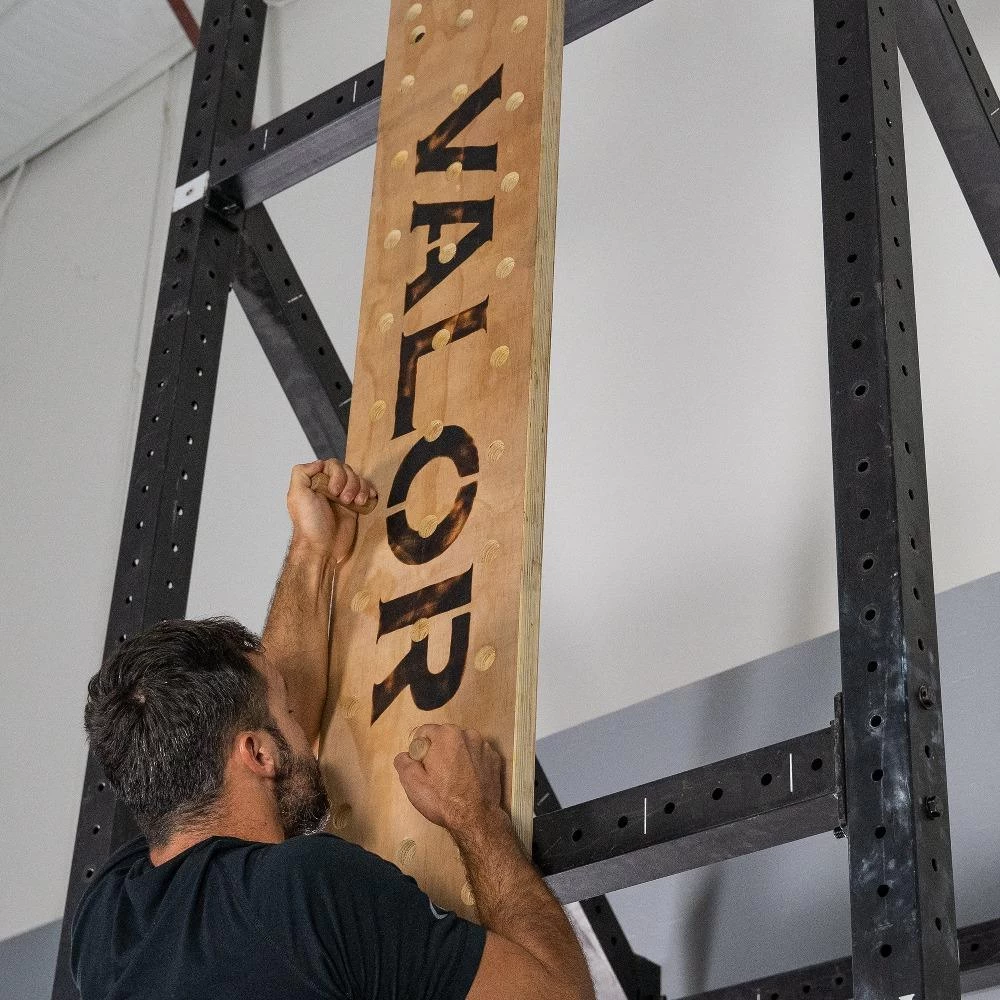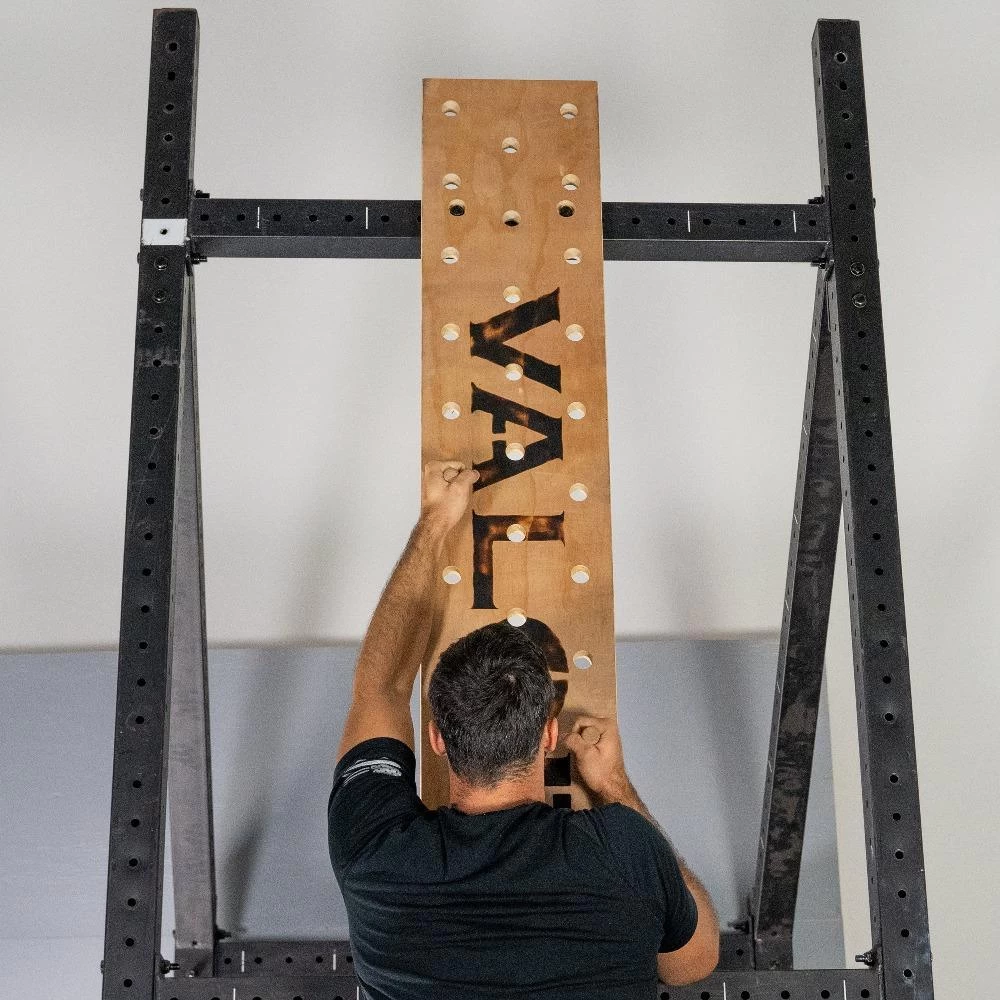 Pegboard climbing is a popular cross-training workout for building grip, forearms, and upper body strength. Securely mount your pegboard vertically or horizontally on garage wall. Get your climbing pegboard from Valor Fitness today!