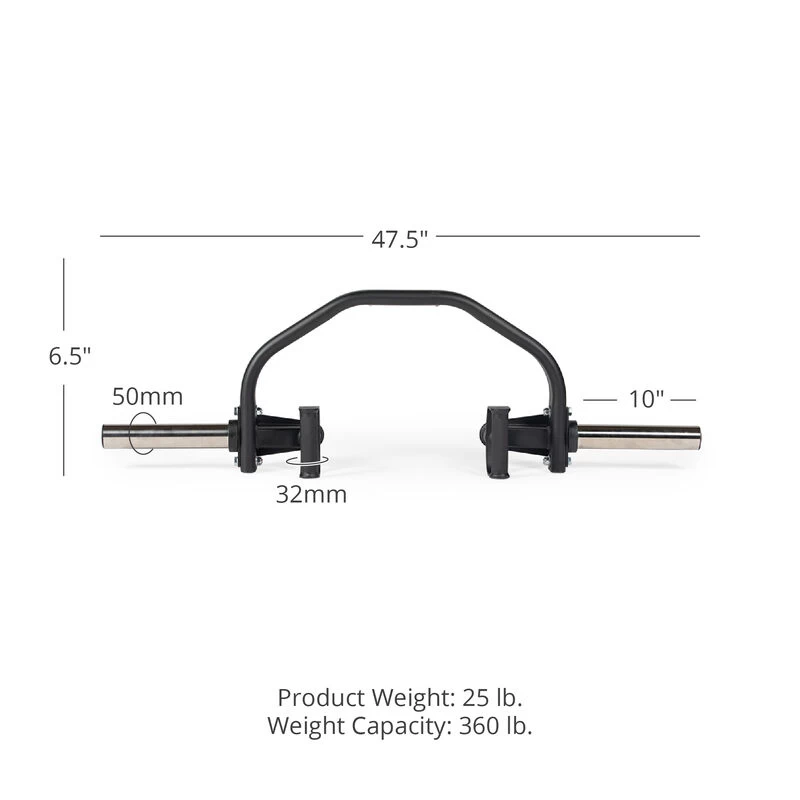 The Pivoting Triceps Bar, created to reduce stress on your elbows, is constructed for the highest-level performance in training a variety of presses and curls. Crafted with an open-ended frame that features swivel knurled handles and Olympic-sized weight sleeves. The bars rotating handles provide a complete contraction of the lateral head of the triceps, as well as minimize the stress on the elbows that often comes with this exercise. The handles revolve on twin roller bearings, providing a smooth rotation no matter how much weight you have on the bar. Made to support a weight capacity of up to 360 LB, this Triceps Bar allows for a versatile range of movements in weighted lunges, squats, standing bicep curls, and more while maintaining balance for overhead presses and shrugs.