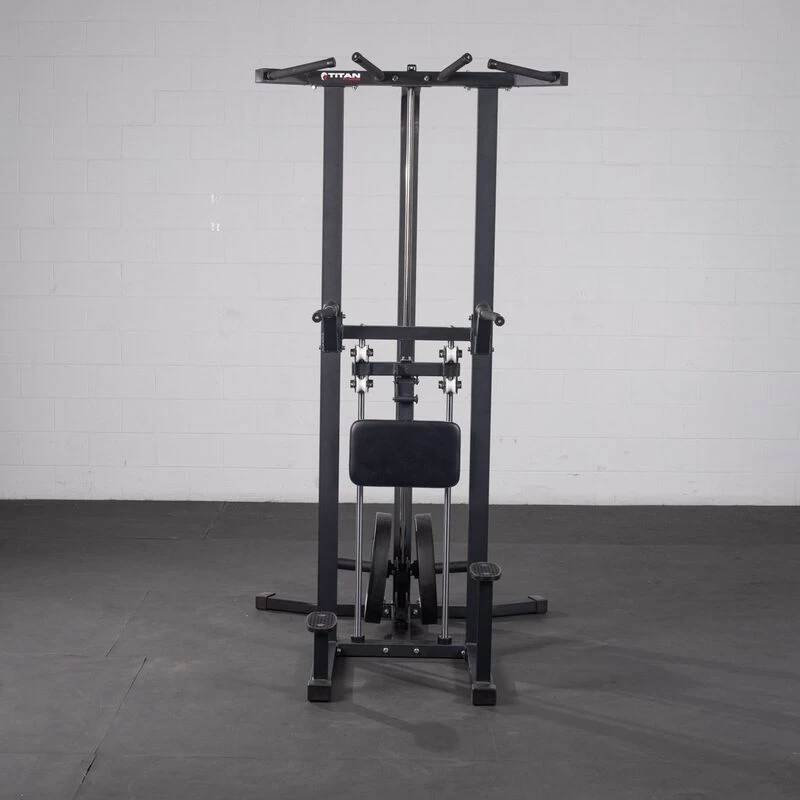 The Pull-Up and Dip Machine is constructed for assisted resistance for developing arm and back muscles, built as a plate-loaded specialty machine that counterbalances your bodyweight, enabling you to perform the desired movement with perfect form while working up to your bodyweight in resistance. Built with dip handles, multiple-position neutral grip pull-up handles, and a comfortable, foldable kneepad that flips up for the option of unassisted training. The built-in Dip Station targets your triceps and stretches and strengthens your chest and shoulders. The versatile Pull-Up Station will improve your functional strength with various grips that help target your lats, back, and biceps by performing numerous reps. A close grip will engage your biceps, while a wide grip will focus on your lats and back. The Vertical Knee Raise Station will strengthen your abdominal muscles by locking your grip to the vertical hand bars, resting your forearms against the arm pads, raising your knees to your chest to target your core, hip flexors, and quads. This 3-in-1 specialty machine will develop upper-body strength, abdominal muscles and improve your functional strength.