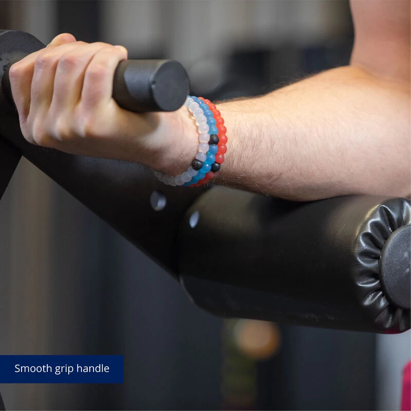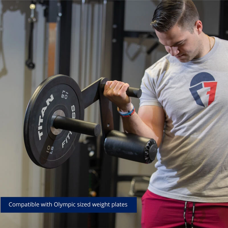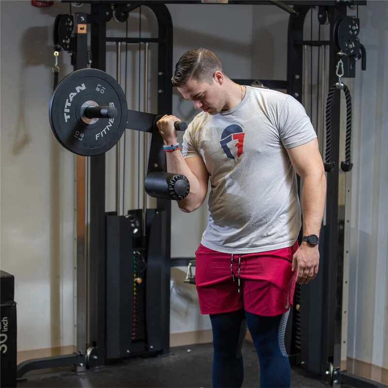 The Lever Curl Dumbbell by Titan Fitness® is Olympic plate-loaded grip bar designed to work the front upper arm and the lower arm muscles. Sold individually, this lever dumbbell is fully adjustable, allowing you to apply more tension at any point in the movement. Featuring a smooth grip handle, three adjustable pad settings, and five adjustable change settings. The closer the adjustment (45-degree angle) will work the top half of the bicep, and fully extending the lever will work the bottom half of the bicep. This lever bar is a must for anyone looking to increase their bicep gains.