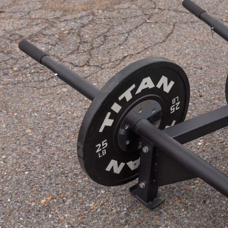 The Weighted Wheelbarrow is a professional-grade training sled ideal for stability and conditioning carries. This plate-loaded wheelbarrow is designed for grip strength training and pushing and pulling motions. It features four areas to add Olympic-sized weight plates, dual vertical weight sleeves, and long handles doubling as weight posts. This multi-function wheelbarrow is your solution to grander strength training that can handle various indoor and outdoor workouts.
