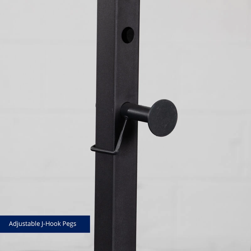 FLAT BENCH STATION: The built-in foldable flat gym weight bench features a comfortable leather exterior that allows you to perform bench presses, pullovers, rows, and other flat bench routines. Additionally, the station comes with two J hook pegs and three height choices.