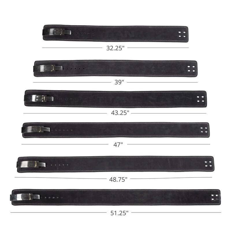 The 10mm Lever Belts utilize the lock-in lever design in place of the single prong buckle like our MAXXUM Lifting Belts. These black laminated leather Powerlifting belts are durable, four-inches-wide, providing firm support through heavy lifts. Crafted with seven adjustable holes spaced 1-inch apart, featuring a stainless-steel lock-in lever and an embossed TITAN logo printed on the back of the belt. Clean design, secure fit, these Lever Belts are built to last through every Deadlift, Squat, or Bent-Over Rows you perform in it.
