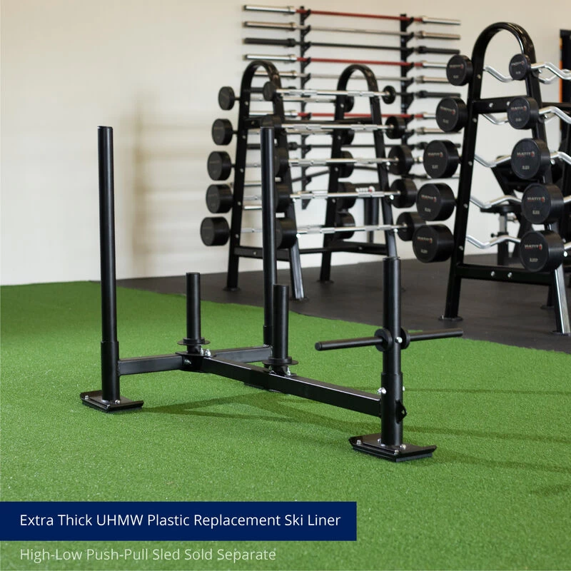 The Replacement Shoes for the High-Low Push-Pull Sled help protect against damage to your sled’s floorboards. Constructed from UHMW plastic, these extra thick ski liners reduce the risk of floor damage and can be used on virtually any surface. Build explosive speed and strength with the addition of the Sled Shoes for a grueling full-body strength training workout.