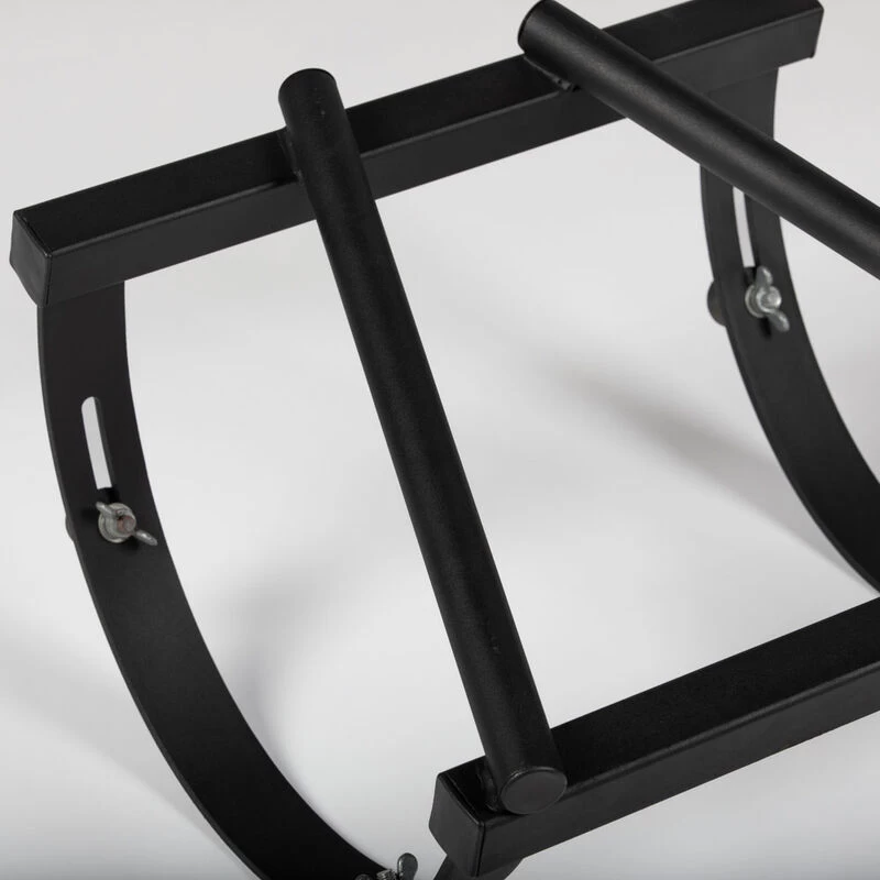 The Rocking Handstand Trainer is a training aid for all gymnasts developing ring handstand, straddle “L” press, and planches skills. This unique, ergonomic design provides a smooth grip with angled handles that guarantees your hands are in the correct position to keep yourself level and your core tight. The trainer features adjustable rubber stoppers that allow you to increase the amount the rocker rotates. The further the grips are, the more complex the training will be. Extremely durable and easy to move, build handstands skills, core strength, and stabilizer muscles with the Rocking Handstand Trainer.