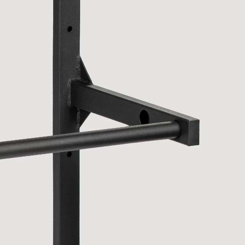 The Small Pull-Up Bar is designed as an adjustable stud-mounted 8 FT max ceiling mount or wall mount. Crafted from 14-gauge steel with the pull-up bar slots measuring at either 10-inches or 14-inches from the mounting point, so you can easily adjust the chin-up/pull-up bar to the appropriate height for your needs. Perform exercises to strengthen your back, upper body, and lateral muscles. Rated at a 350-pound weight capacity, this durable wall-mounted pull-up bar is a great strength accessory to add to an existing gym or instantly turn a room into one.