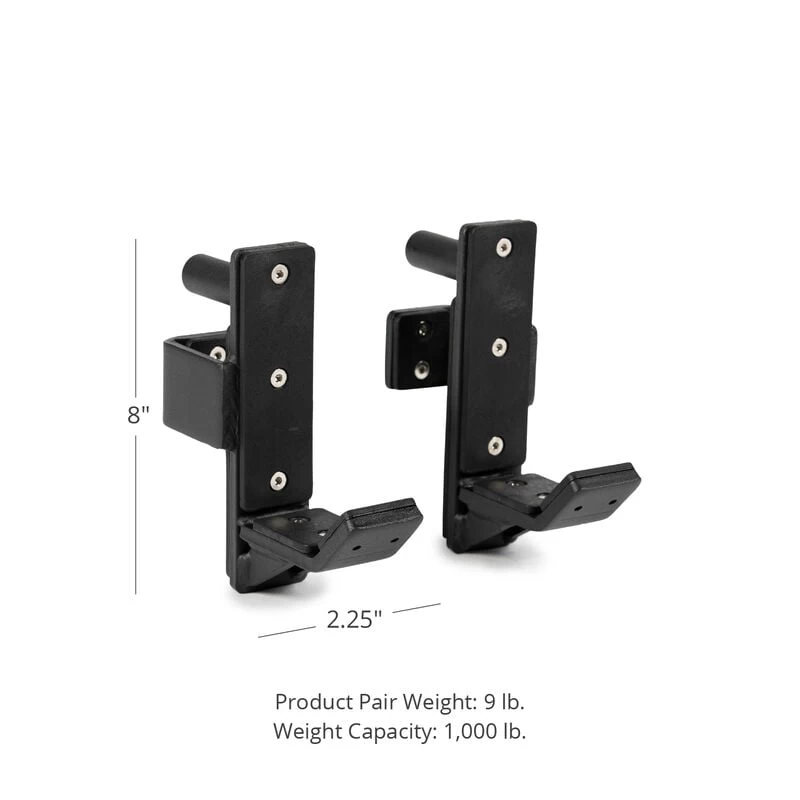 The T-2 Series J-Hooks are designed with a J-hook-style mounting system that allows you to install the hooks to your rack within seconds. Easily clip the mounting system into the uprights by inserting the pin and twisting the bars down. No hardware is required. The two 2-inch-wide hooks can hold up to 1,000-pounds and feature a durable plastic core on the backplate, lip, and frame, helping preserve your bar’s knurling and rack from being damaged. Elevate your workouts and overall safety with the T-2 Series J-Hooks!