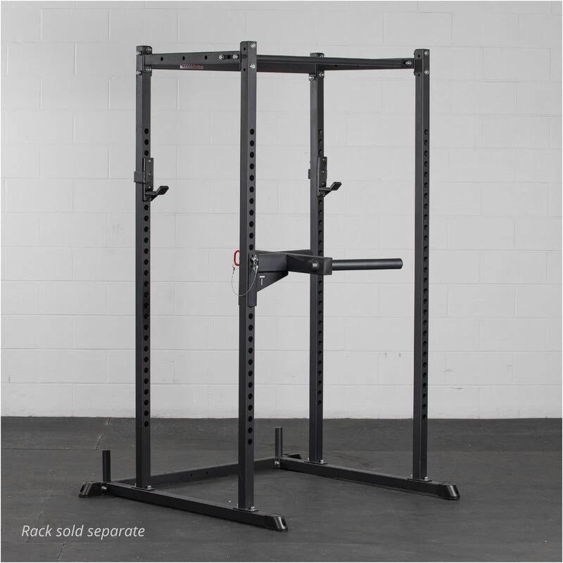 The T-2 Series Y-Dip from Titan Fitness® will transform your T-2 Series Power Rack into a fully adjustable dip station. Featuring a quick-change pin mounting system that allows you to install the Y Dip Bar to your Rack within seconds. The two 48 mm grip handles can hold up to 550-pounds and are set at an angle to allow for grip options from 16 to 22-inches wide.