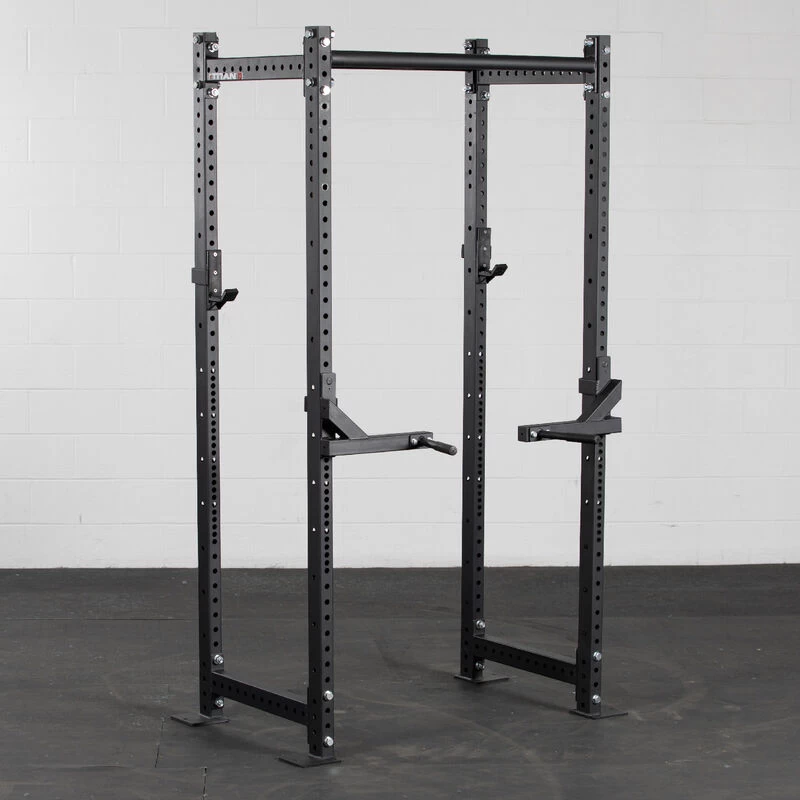 The T-3 Series Dip Bars by Titan Fitness® will transform your T-3 Series Power Rack into a fully adjustable dip station. Designed with a J-hook style mounting system that allows you to install the Bars to your Rack within seconds. Easily clip the mounting system into the uprights by inserting the pin and twisting the bars down. No hardware required. The two 30 mm grip handles can hold up to 880-pounds and are a great way to build strength in your chest, shoulders, and arms. If bodyweight isn’t enough, try holding a dumbbell between your legs to add more weight and resistance to your dip exercise.
