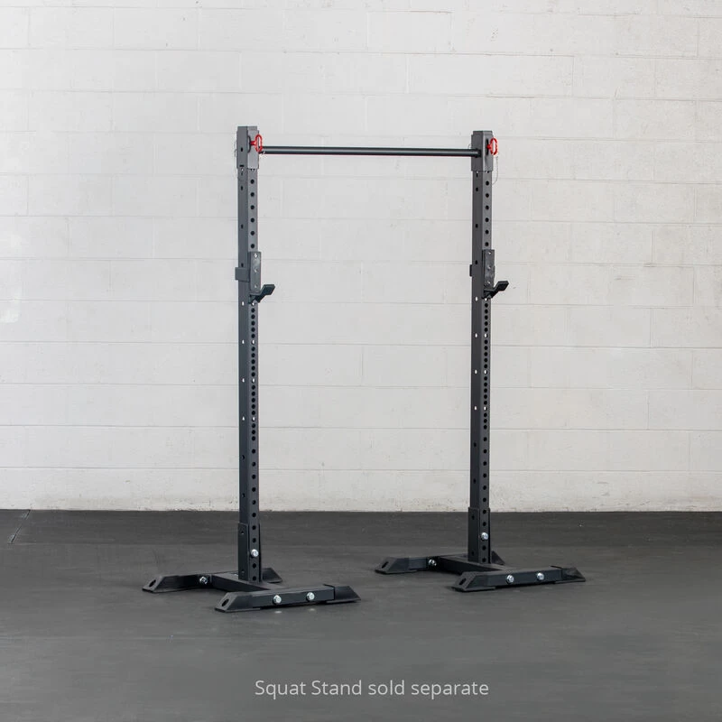 The T-3 Series Adjustable 42-inch Pull-Up Bar is designed exclusively for our T-3 Series Independent Squat Stand. Featuring locking pins, this 1.25-inch diameter bar can be placed at any height inside the Independent Squat Stand’s 72-inch overall height. Creating an alternate pull-up option without the inconvenience of having a permanent bar bolted to the uprights. This easy-to-attach bar is sturdy and the perfect option for family pull-up competitions.