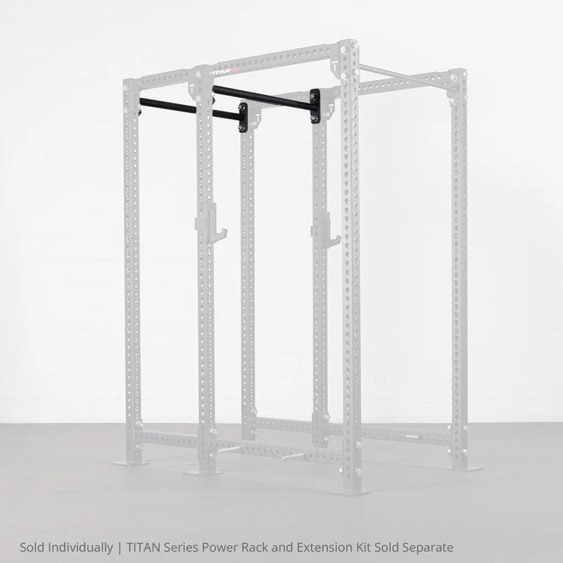 The TITAN Series standard 42-inch Single Fat Pull-Up Bar is designed exclusively for our top-of-the-line system. This increased diameter pull-up bar is great for building grip and forearm strength. Featuring a 2-inch diameter, 8.5-inch endplates, 6-inches mounting holes on-center, and is powder-coated black. Attach this bar at different heights or double up bars to challenge your grip strength. Either way, you are also increasing the stabilization of your rack.