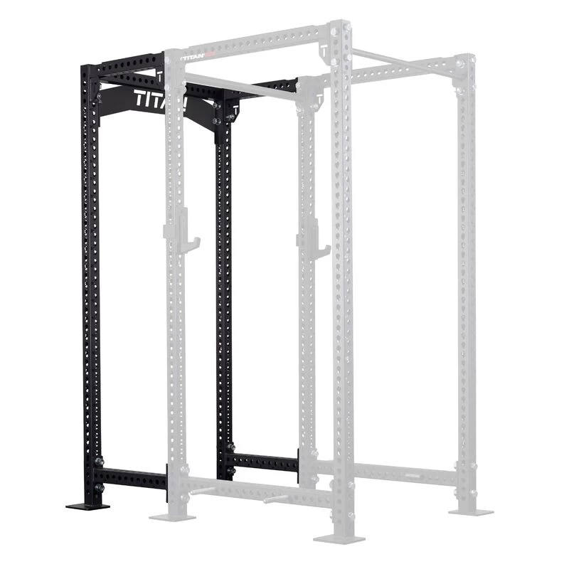 Expand your TITAN Series Bolt Down Power Rack to a 6-upright cage with the 24-inch Depth Rack Extension Kit. This expansion kit is perfect for adding additional plate storage and space to customize the rack to fit your workout needs. These bolt-together extensions feature 3 x 3-inch 11-gauge square steel uprights with laser-cut keyholes spaced 2-inches on the center and laser-cut numbers throughout the front and back of the uprights and crossmembers. This expansion kit includes your choice of a 1.25-inch Single Pull-Up Bar, 2-inch Fat Pull-Up Bar a Crossmember Nameplate or you can choose to leave the headspace empty with no crossmember support. Customizable, durable, and exceptionally functional, the TITAN Series Extension Kit will take your Power Rack to the next level of the top of the food chain.