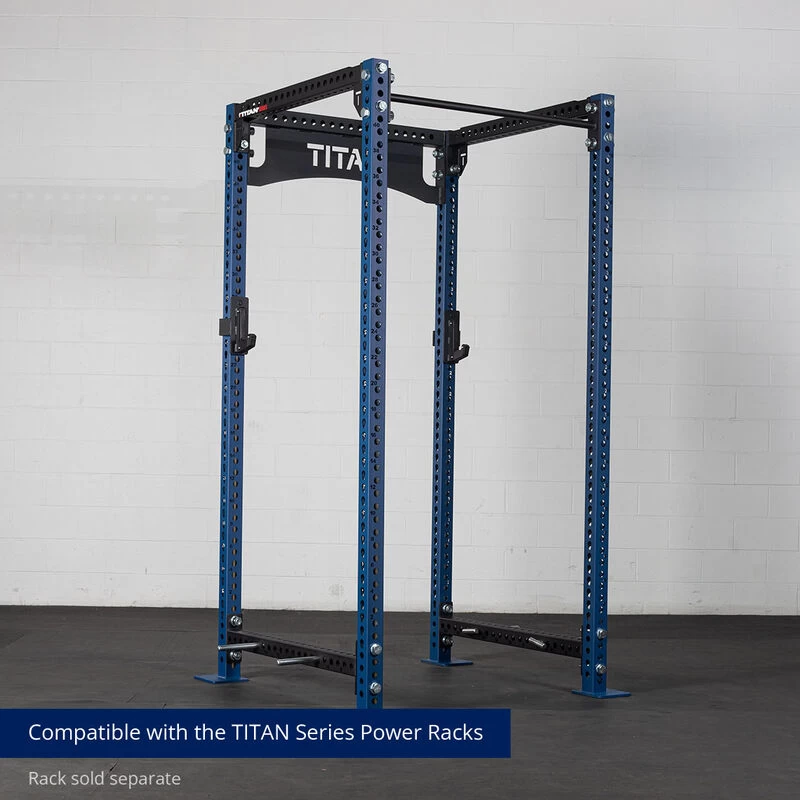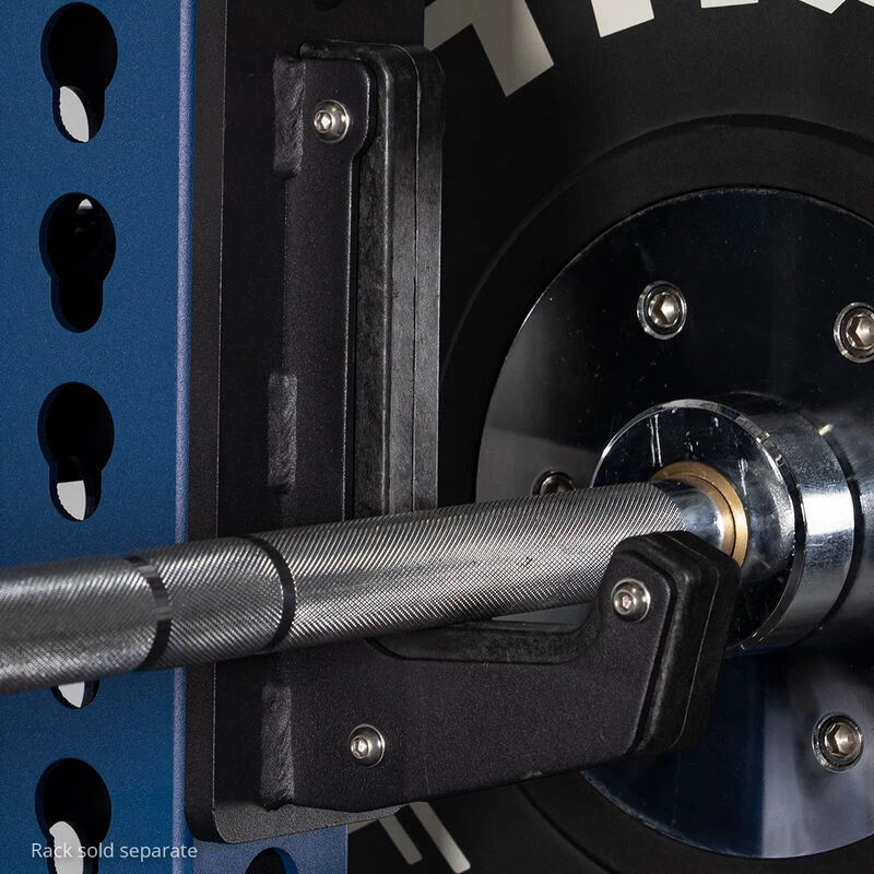 The TITAN Series Sandwich J-Hooks are designed with a J-hook style mounting system that allows you to install the hooks to your rack within seconds. Easily clip the mounting system into the uprights by inserting the pin and rotating the hooks down. No hardware is required. The two 1.375-inch-wide hooks can hold up to 1,850-pounds and feature 1-inches of UHMW plastic core sandwiched between two thick steel plates with 0.375-inch of UMHW exposed to protect and preserve your bar’s finish and knurling. Elevate your workouts and general safety with the TITAN Series Sandwich J-Hooks!