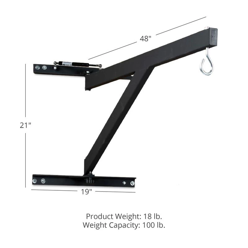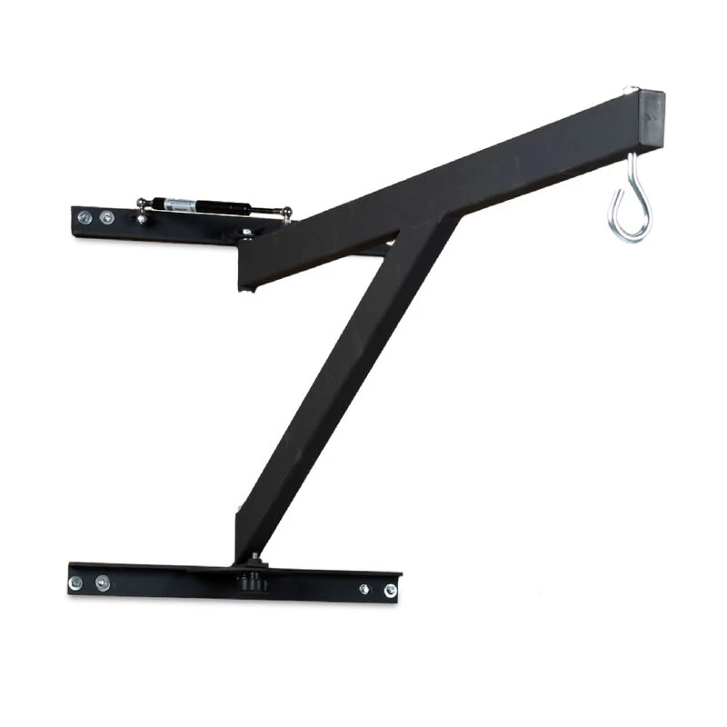 The Wall Mounted Heavy Bag Boxing Mount is an ideal space saver for multipurpose rooms in your home or garage gym. The simple design allows you to store your 100 LB bag flat against the wall and fold it out when you are ready to train. This unit stands 4 FT away from the wall allowing you to work your way around the entire bag during your session. Rotate through power shots, jabs, crosses, hooks, and kicks with peace of mind, focusing only on your heavy bag. The strut mounted at the top of the unit will auto-return the bag to the wall, hold it against the wall when not in use, and provide extra stability. This Heavy Bag Mount is just what you need to refine your aerobic conditioning, endurance, and technique.