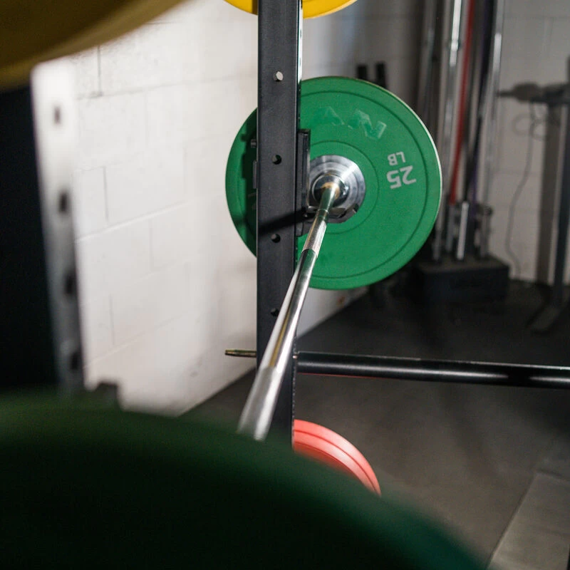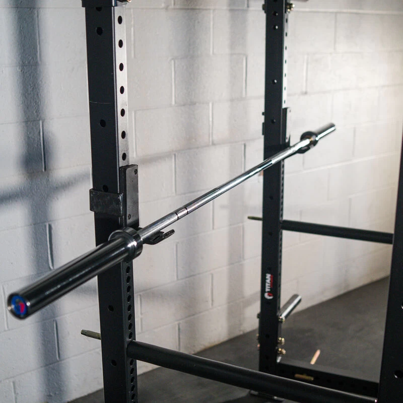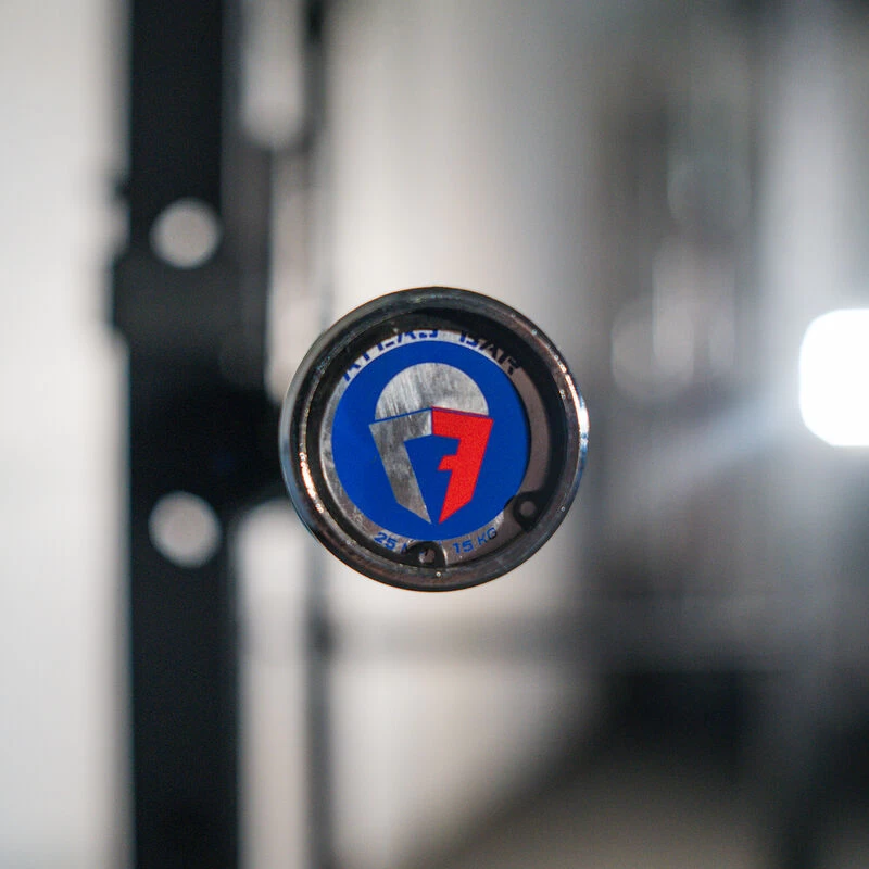 The Titan Fitness Atlas Bar is a multipurpose barbell that is ideally suited for power lifts – squats, deadlifts, and bench press. This bar is great for lighter Olympic lifts and beginners doing cross-training style workouts. The Atlas Bar features a chrome 15KG, 25MM bar with a medium knurl, and dual knurl marks. Tested to 220,000 PSI, the Atlas Bar maintains a good whip for multiple reps but can stand up to the load and abuse of powerlifting. The friction-welded sleeves have a stainless-steel finish with bronze bushing and bearings that give the bar a smooth consistent spin.
