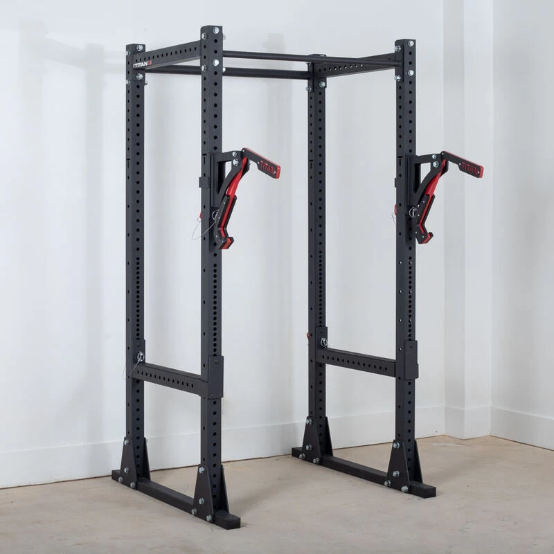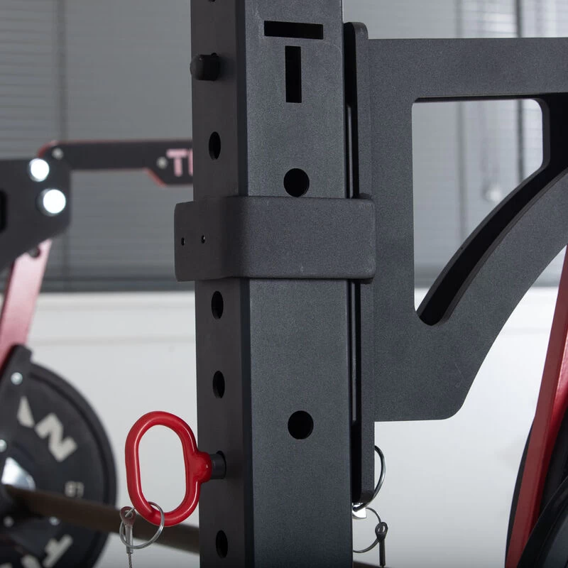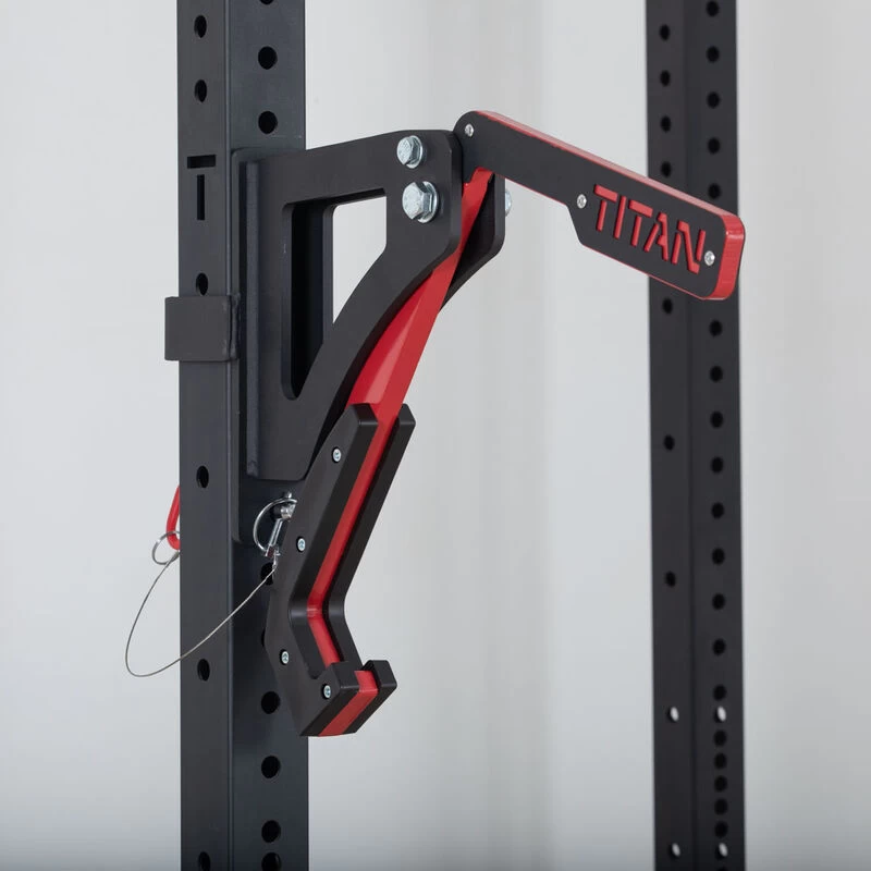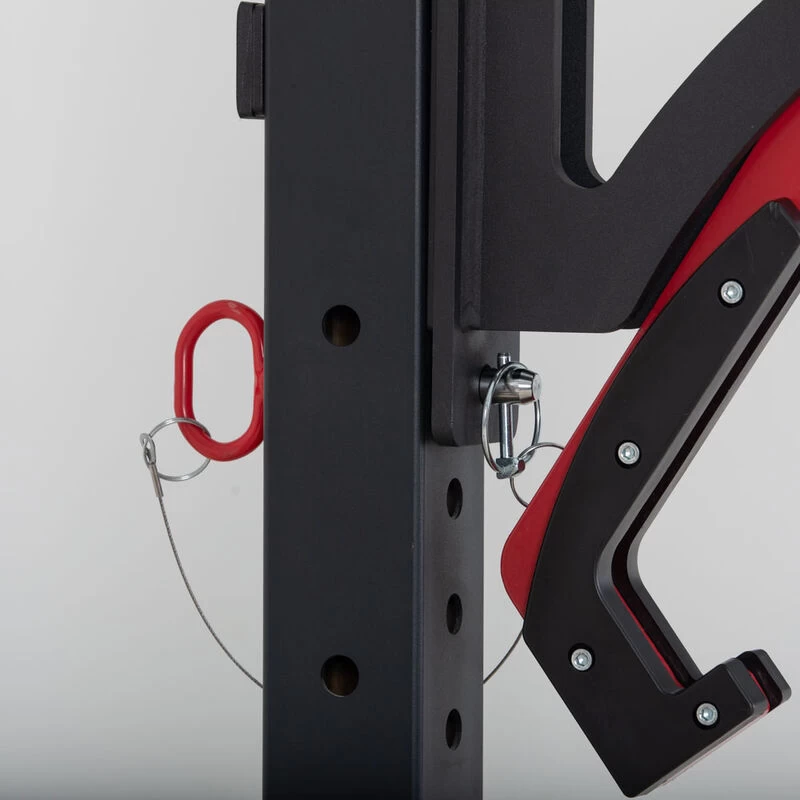 The Adjustable Monolift Attachment is a lift assist compatible with the X-3 Series Power Racks. Crafted with a J-hook-style mounting system, you can install the attachment to your rack within seconds. Easily clip the mounting system into the uprights by inserting the pin and rotating the lift down. No hardware is required. Designed with counterweight handles at the top, so when you lift a barbell off the lift, the hooks will swing back toward the rack and stay there. This feature clears up space so you can exercise in place without having to walk the bar out from over the J-Hooks. Re-racking is just as easy; a short lean forward re-racks the bar and returns to its original position. Reduce the possibility of injury and go for max reps with X-3 Series Monolifts!