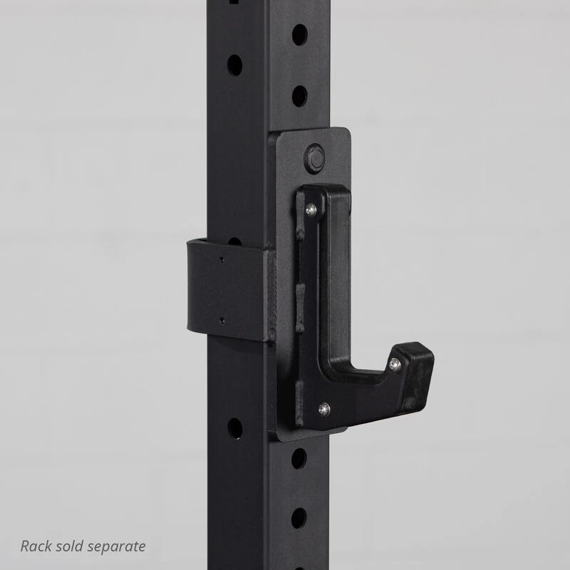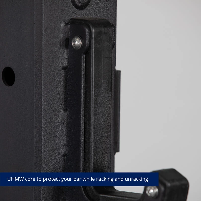 The X-3 Series Sandwich J-Hooks by Titan Fitness® are designed with a J-hook style mounting system that allows you to install the hooks to your rack within seconds. Easily clip the mounting system into the uprights by inserting the pin and rotating the hooks down. No hardware required. The two 1.375-inch-wide hooks can hold up to 1,100-pounds and feature 1-inches of UHMW plastic core sandwiched between two thick steel plates with 0.375-inch of UMHW exposed to protect and preserve your bar’s finish and knurling. Elevate your workouts and general safety with the X-3 Series Sandwich J-Hooks!