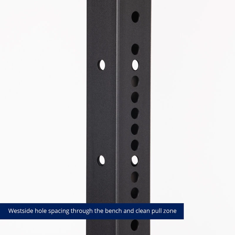 The X-3 Series Space Saving Racks give you the functionality of a power rack with a small footprint. We offer our Space Saving Racks in Short and Tall models with depth options of 12, 18, or 24-inches. Featuring reinforced J-Hooks, heavy-duty 3 x 3-inch 11-gauge square steel uprights with laser-cut holes spaced 2-inches on the center, Westside hole spacing through the bench, and clean pull zone, 6-inch hole spacing on the sides, and a bolt-together design. Additionally, we offer (2) side bracings in your desired length for optimal stability.